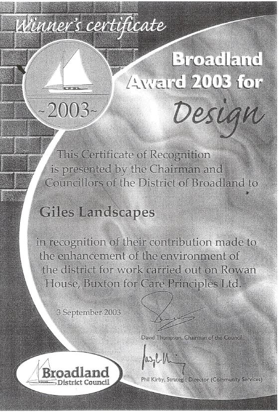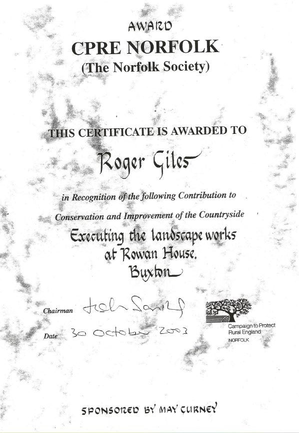 In early 2000’s, a landscaping architect rang me saying I have several projects that have a strong biodiversity angle, that I may ask for your company to price for. Would you be able to give me a list of some of your major live projects, so I and the CEO can check out you work without pre bookings. This went on for a couple of years. Just when I was about to terminate the business, a letter came saying, will you price for landscaping at a secure hospital in Buxton, Norfolk. We expect your price to be in line with current price levels. You will be referred to as a partner. We put in the price, it was accepted, and we were awarded the project and work started. I then had a letter to join the client care principles and Simmons, the team builder in the directors’ suite at Trent Bridge, for a team building seminar run by a Business Coach team called ‘Change for advantage’. Meeting reps from all other tradesmen was very good, plus all attendees sat a KAI exam. My score was 129. The landscape architect asked me to brief my team to talk very courteously to locals/parish councillors at Buxton, as they were anti the project. Something went right and the Buxton Parish council liked us and entered us for 2 awards, and we won them both.